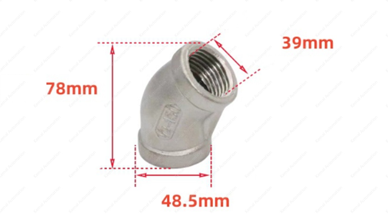Stainless steel 45 degree elbow internal tooth straight bend joint internal thread buckle elbow plumbing fitting body is made of stainless steel, thickened design, more assured to use. Precision casting, after sun and rain, pleasant and fearless, corrosion, oxidation, high temperature resistance, longer service life.